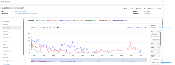 On the Monthly Production or Type Curve tabs, click "Add Series"