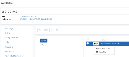 Use the Files tab when working within the Well Details page of a specific well.