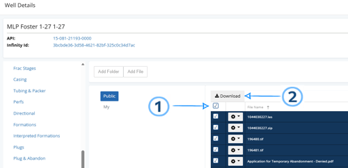 This article explains how to download files from an individual well. If you need to download files across multiple wells, see the section below on bulk downloads.