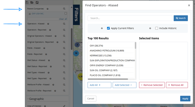 In oil and gas, companies are frequently acquired or reorganized, and wells may continue to report under legacy names. The Parent Company feature helps you: