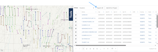 Use filters to narrow your well list to the wells you want to export. Once your list is set, click Export All. This opens the Data Export Wizard.