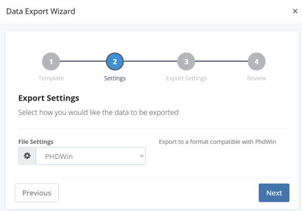 Choose PHDwin as your export format.