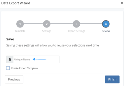 Enter a name for your export to help identify it later.