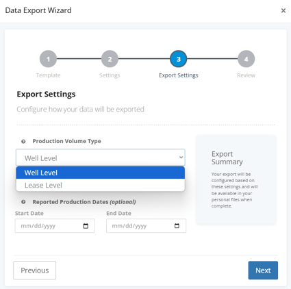 Note: We recommend exporting at the reported level of production. Review the following blog for more information: Production Reporting
